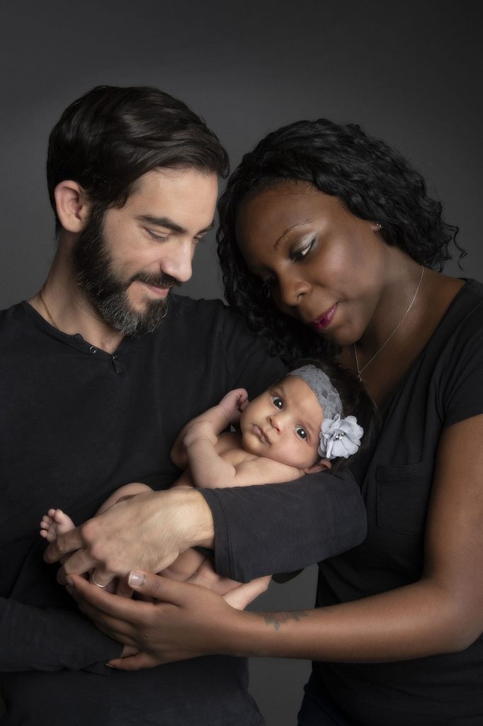 Les photos de famille avec les parents ou la fratrie seront réalisées en début des séances. Pensez à prévoir de quoi occuper calmement les ainés afin que l’environnement reste doux et confortable pour bébé.
