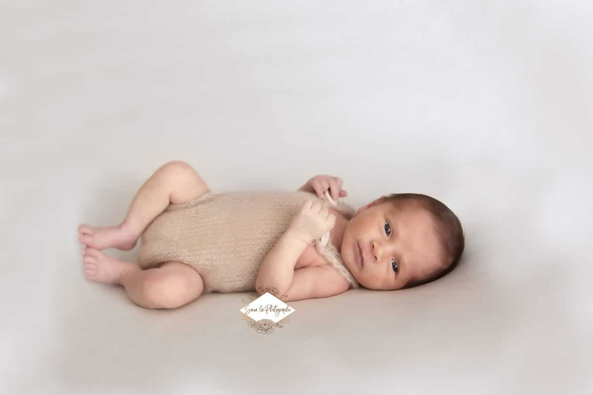 Pour obtenir le meilleur d’une séance nouveau-né, il est conseillé de la réaliser dans les 15 premiers jours de bébé. Les 15 premiers jours de bébé sont rythmés par beaucoup de sommeil et les tout petits prennent volontiers les positions foetales si douce en image. Plus tard, les poses sont plus difficiles à retrouver, le sommeil est plus léger, et bébé devient plus actif et commence à observer ce qu’il se passe autour, donc tout cela peut compromettre le bon déroulement de la séance.